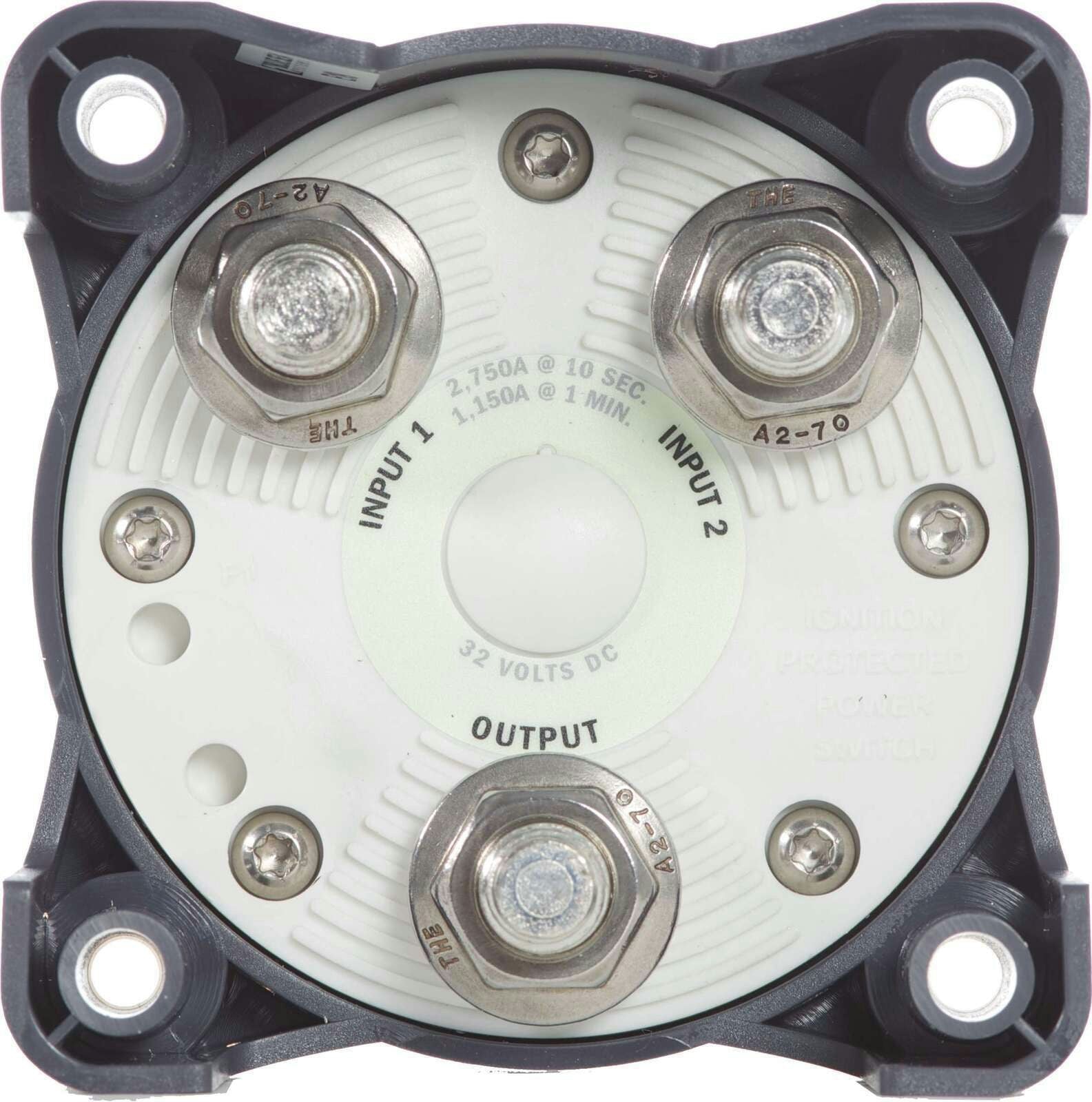 - Make-before-break contact design allows switching between battery banks without power interruption