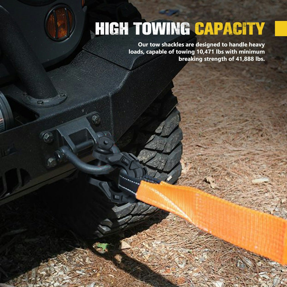 High Towing Capacity: Our tow shackles are designed to handle heavy loads,