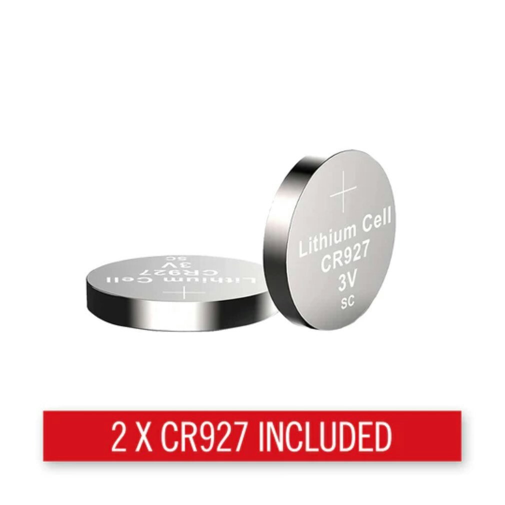 Spring-loaded pliers with wire cutter, 2.0 in. Blade, a built-in LED, saw blade, lanyard hole, Phillips (1) and flathead (3) screwdriver tips, bottle opener, wire stripper, awl, file with nail pick, can opener. 2 x CR927 batteries included.