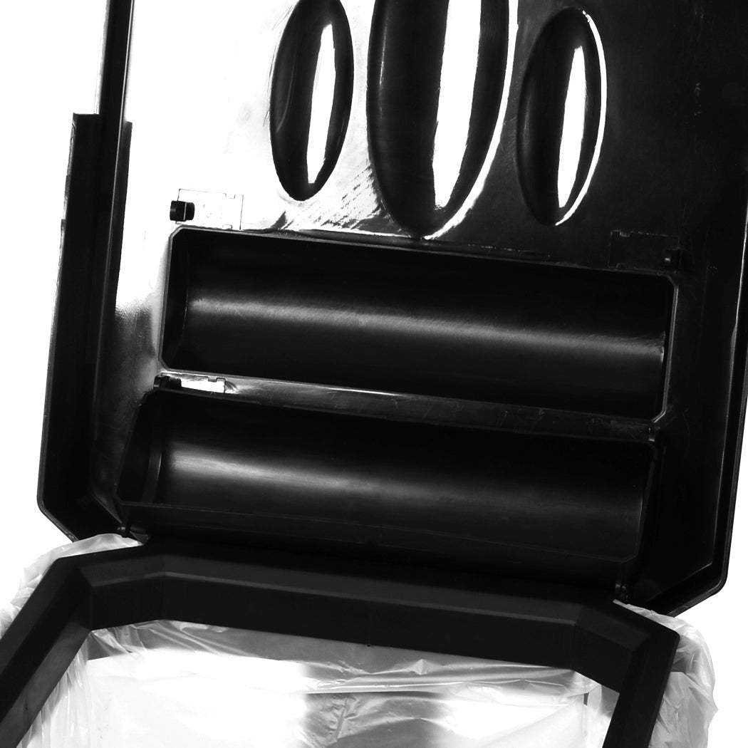 Flip open the heavy-duty lid to place your rubbish inside the bag. We provide you with 7 bags to get started. Buy more 60L bags from any supermarket so you never run out.