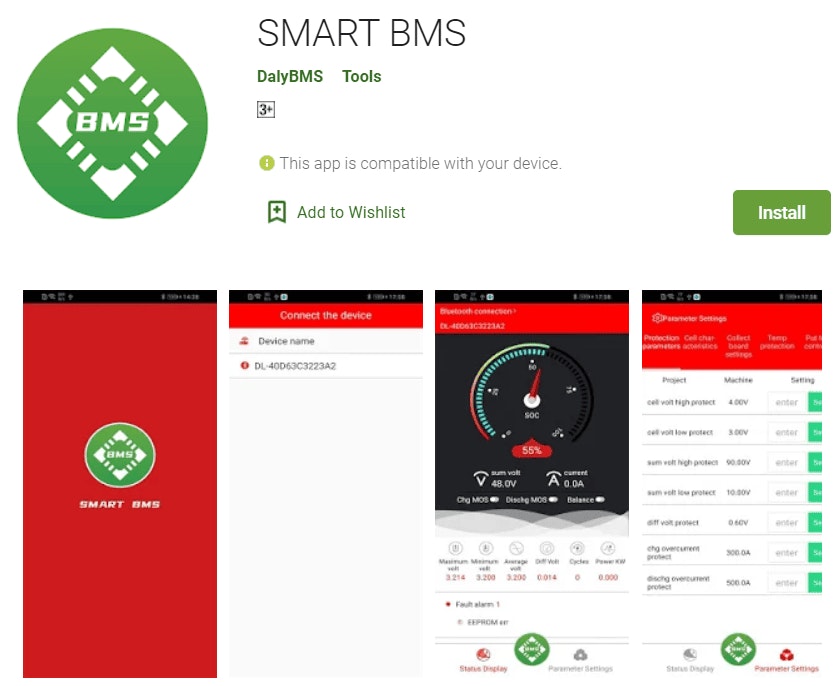 - Look up SMART BMS by DalyBMS on the Android Play Store or iOS App Store