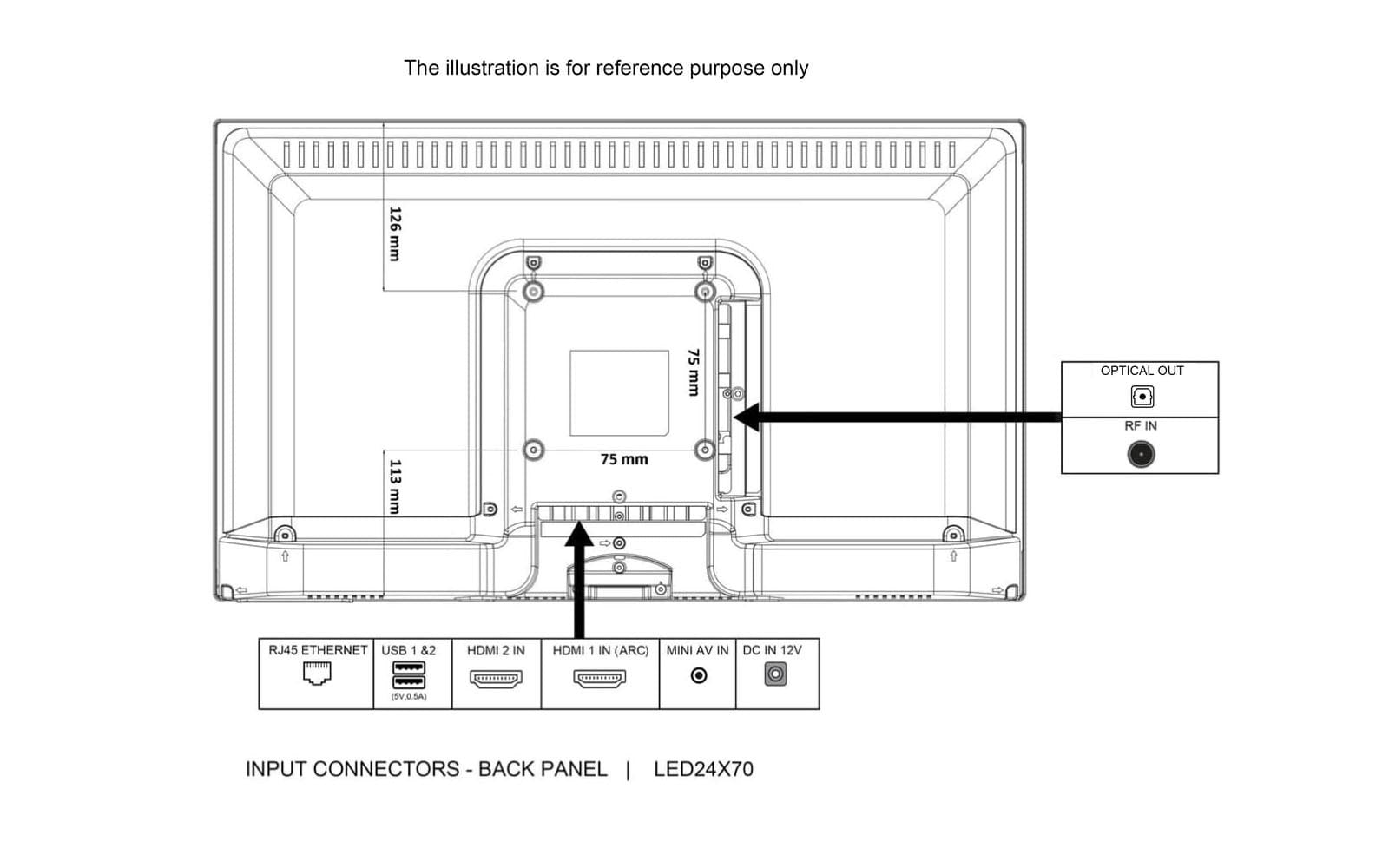 - VESA (H/V): 75 x 75 mm