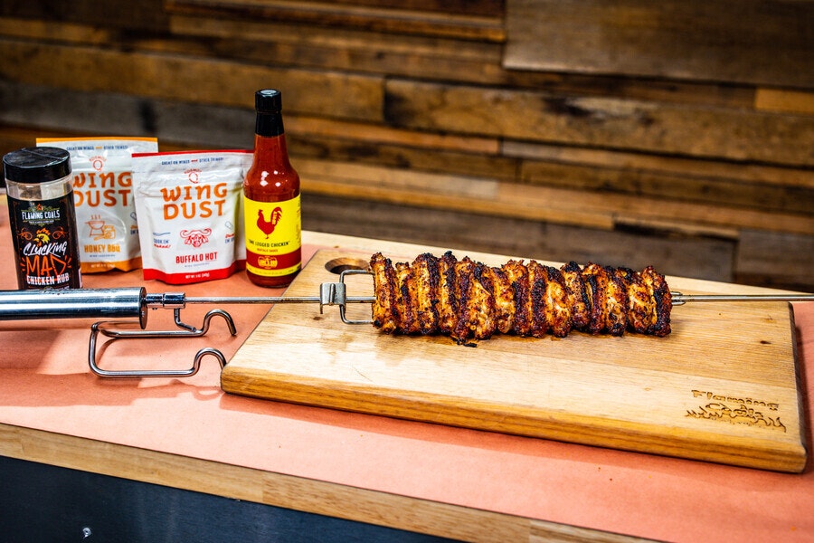 - Light, cordless and portable 304 stainless steel rotisserie kit