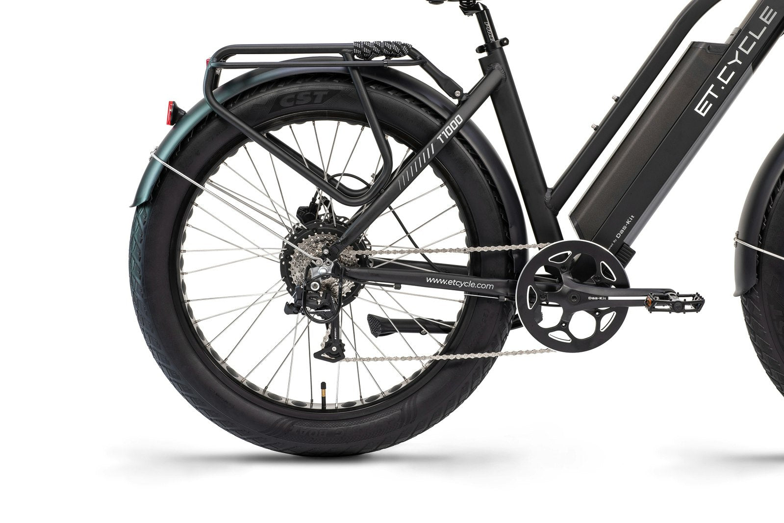 ET.Cycle T-Series is our electric fat bike that pushes attitude even further. Like its F-Series’ cousin, T-Series also boasts more power and up to 40% more range with Das-Kit motor and 1008Wh Das-Kit battery. But T-Series pushes fat to the max with 26” x 4 inch super fat tires that open up an even wider range of terrain. Deeper sand and snow, more rugged and rutted trails, and rough city streets that other e-bikes might find unforgiving. T-Series’s sturdier frame takes more punishment and keeps rolling.