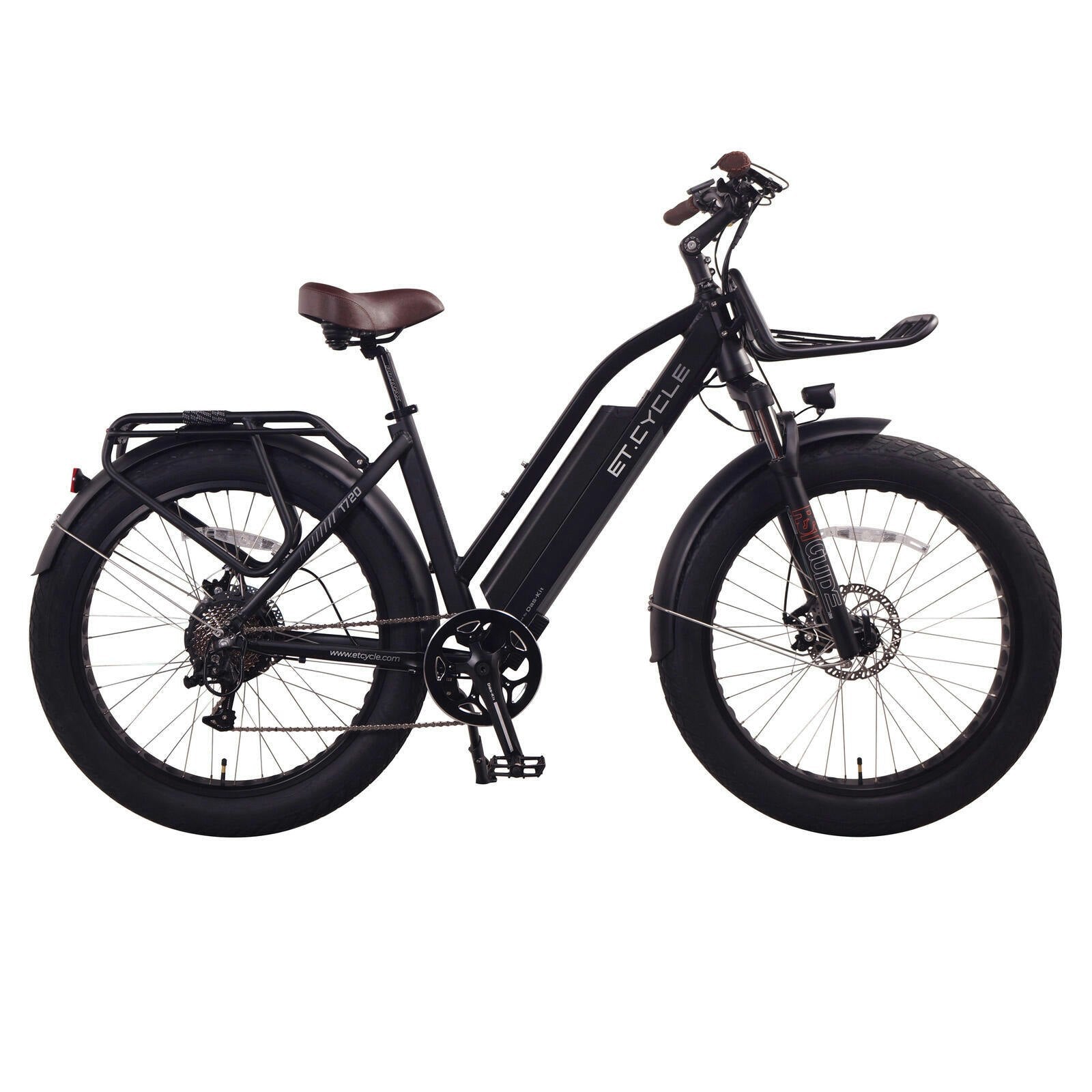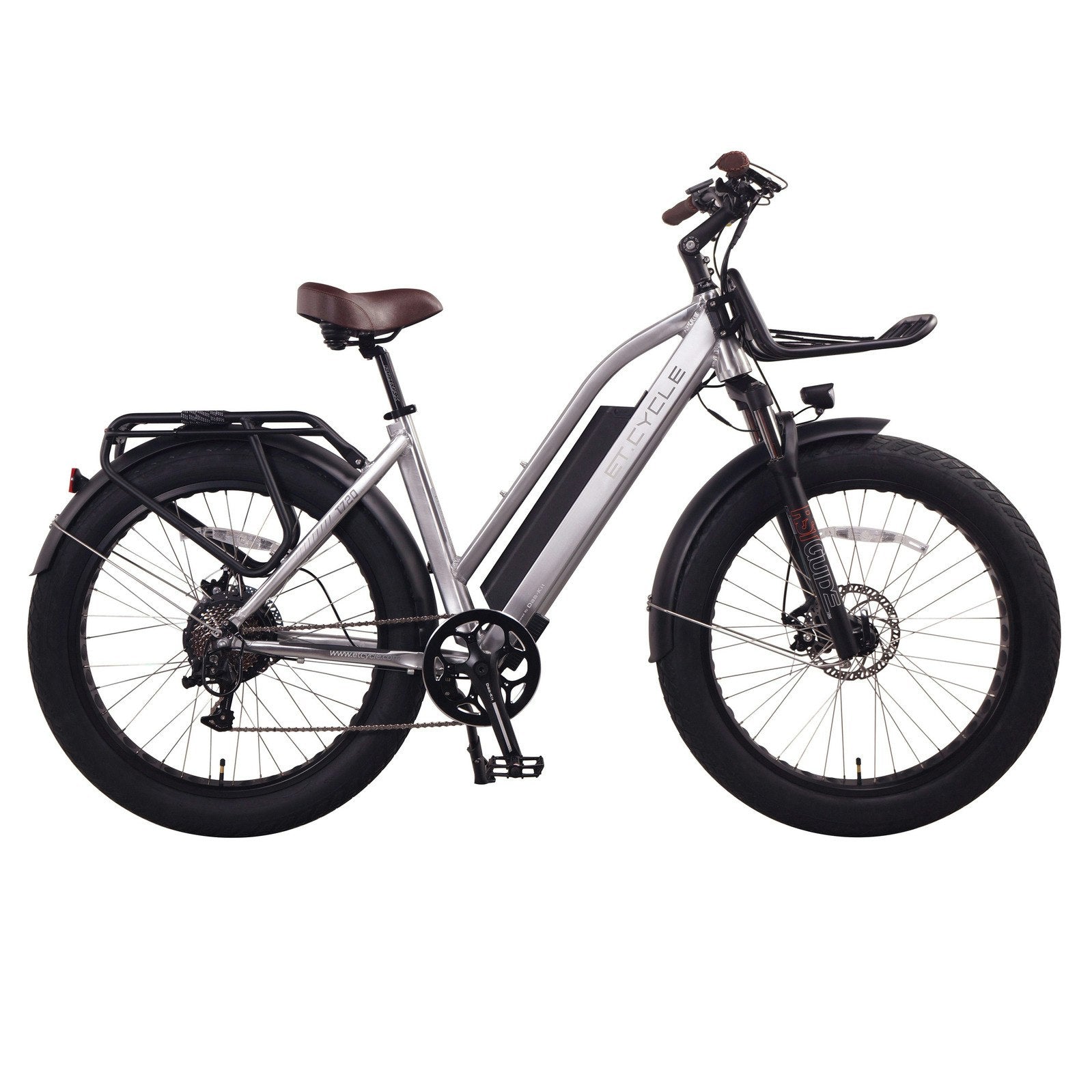 ET.Cycle T720 is our electric fat bike that pushes attitude even further. Like its F-Series’ cousin, T-Series also boasts more power and up to 40% more range with Das-Kit motor and 720Wh Das-Kit battery. But T-Series pushes fat to the max with 26” x 4 inch super fat tires that open up an even wider range of terrain. Deeper sand and snow, more rugged and rutted trails, and rough city streets that other e-bikes might find unforgiving. T-Series’s sturdier frame takes more punishment and keeps rolling.