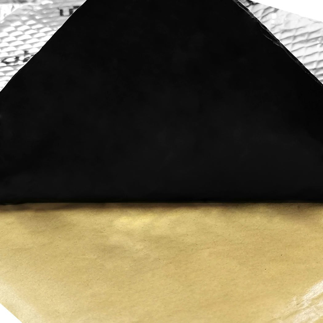 Just peel the wax paper backing off and press your sound deadening insulation directly onto your car frame. It will stick without any extra products needed. No messy tar or glue.