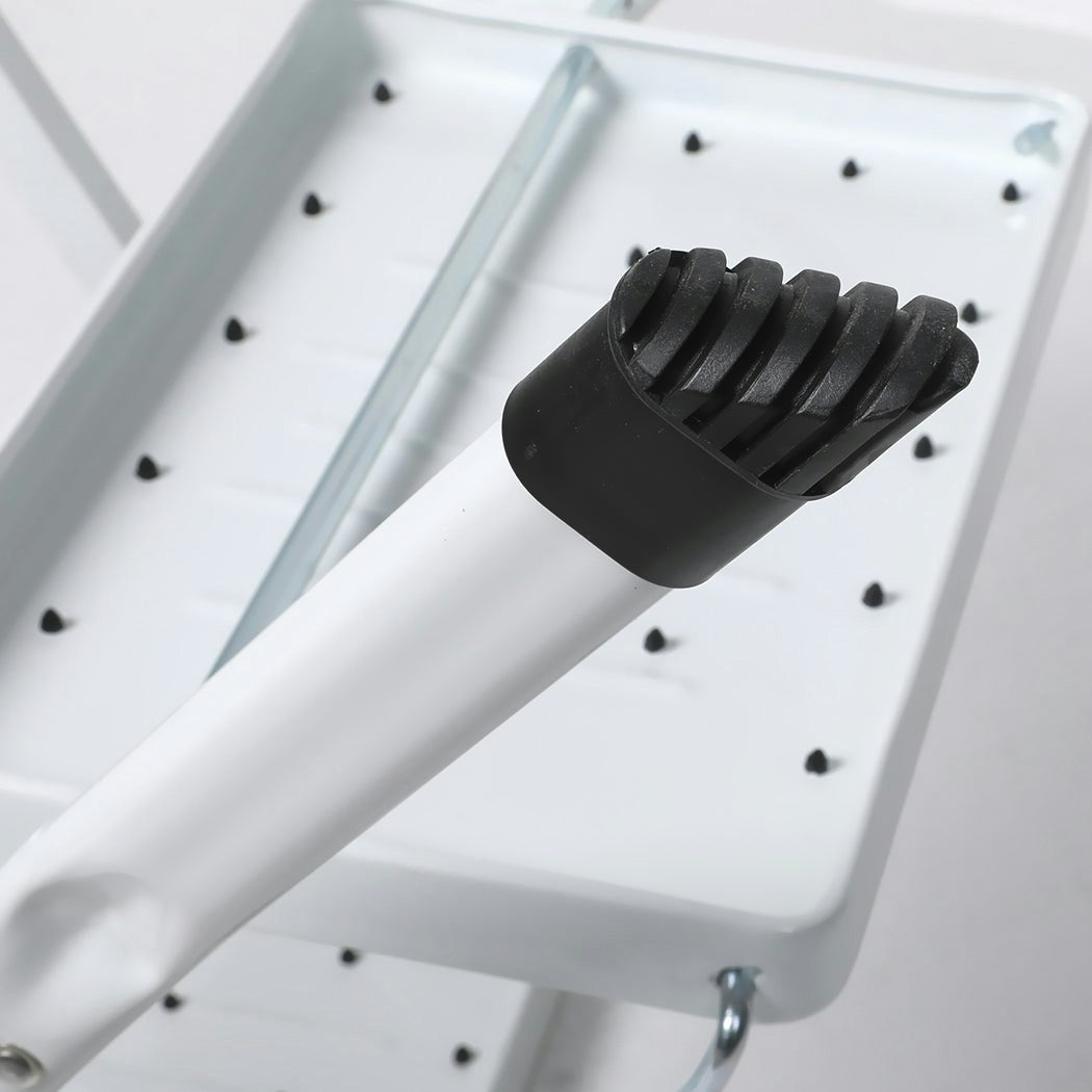 It is made of heavy-duty steel frame with a combined weight capacity of 150kg. The steel is furnished with a special powder coating to offer exceptional resistance towards rust and corrosion. Featuring a unique A-shaped bracket with a 60° angle when fully erected provides greater stability and balance.