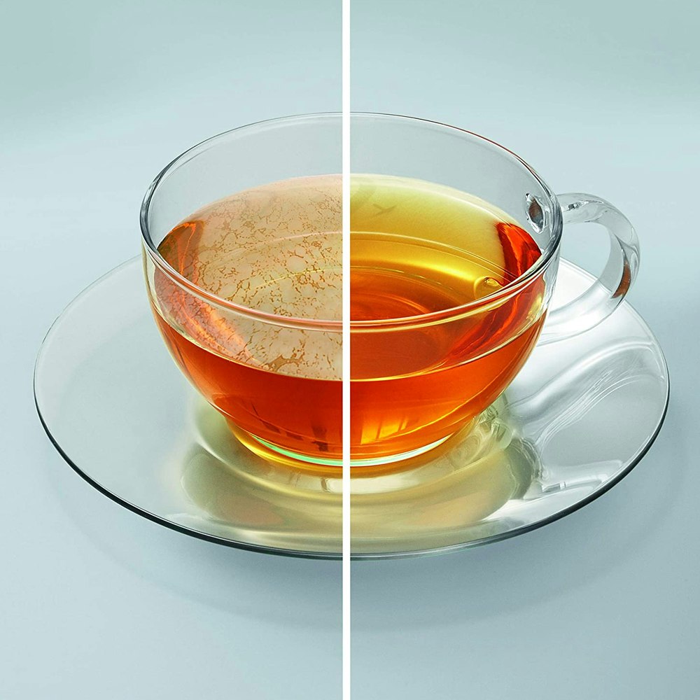 The stylish Brita Glass Kettle has a built-in Brita water filter system that reduces limescale and chlorine, it also absorbs any copper and lead that could occur in tap water. To make sure every litre of water you boil remains pure, there is a handy built in digital alert to remind you when the cartridge needs to be replaced. Enjoy your cleaner, clearer, better tasting coffee and tea.* As the temperature rises, the water is infused with soft blue light which illuminates at its brightest when boiling point is reached.