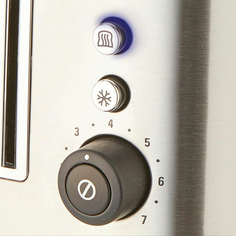 The Russell Hobbs Carlton Collection shows off stylish curves along with elegant feature points. This brushed toaster is a great addition with chrome accents and stainless steel finishes making the Carlton Collection a perfect match to any kitchen, be it classic or modern
