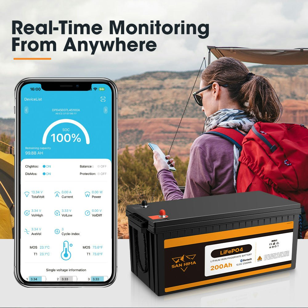 San Hima 12V 200Ah Lithium Iron Phosphate Battery LiFePO4 w/ Built-in BMS Bluetooth
