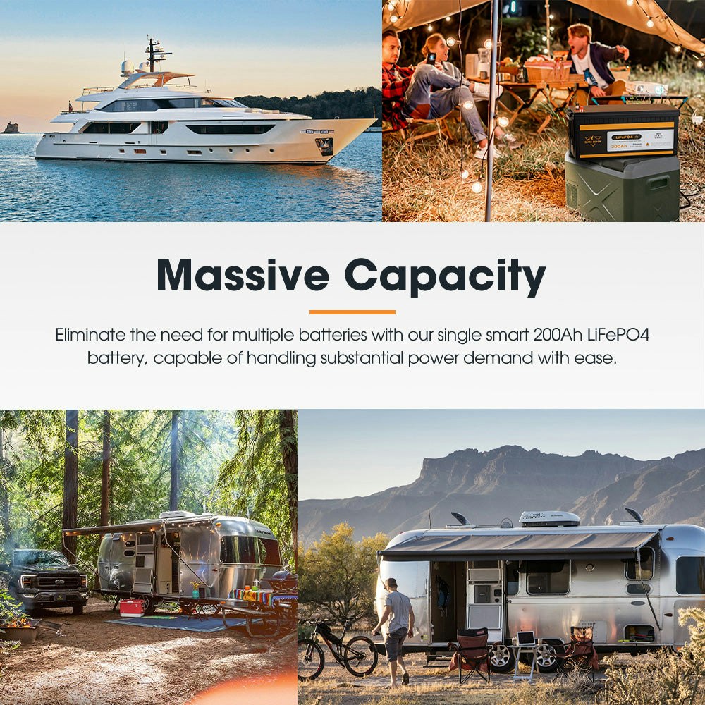 discharge of 250A, our battery effortlessly powers fridge, air conditioner and