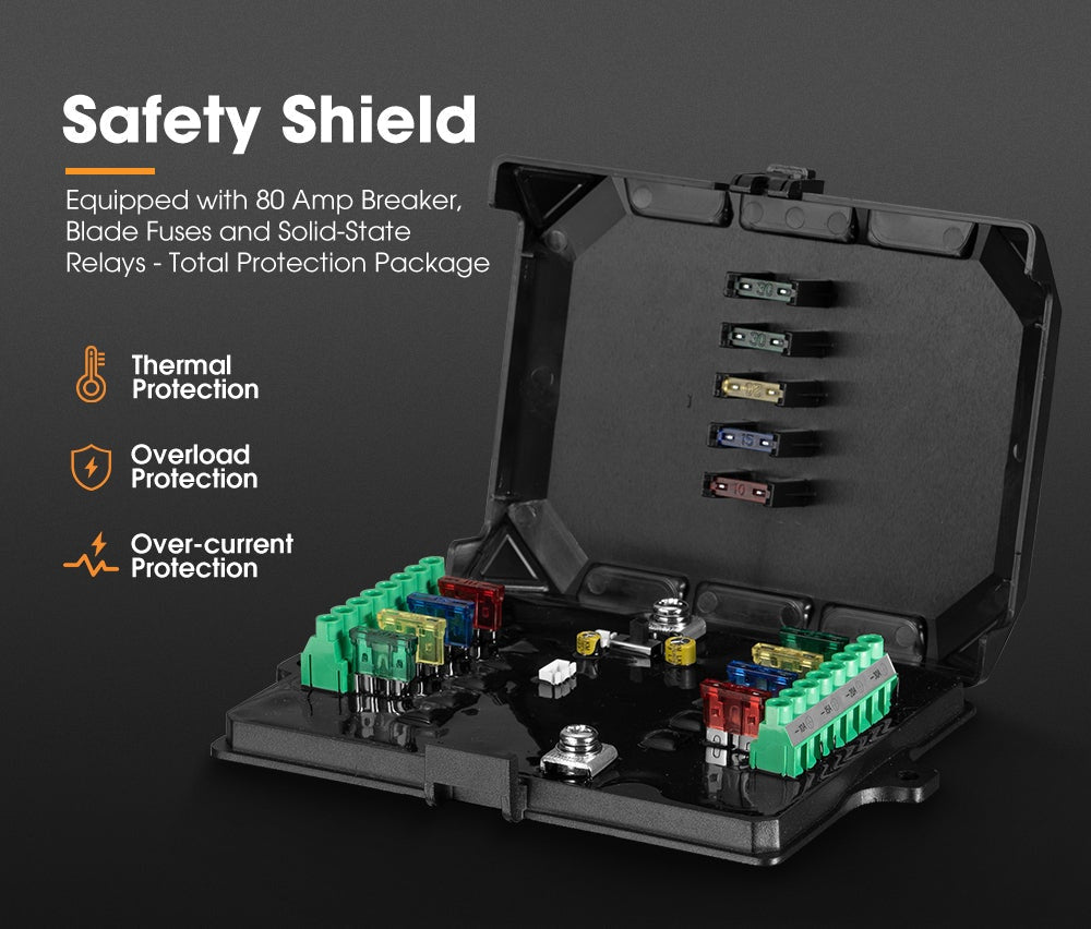 Enhanced Safety: Equipped with an 80Amp circuit breaker, blade fuses, and
