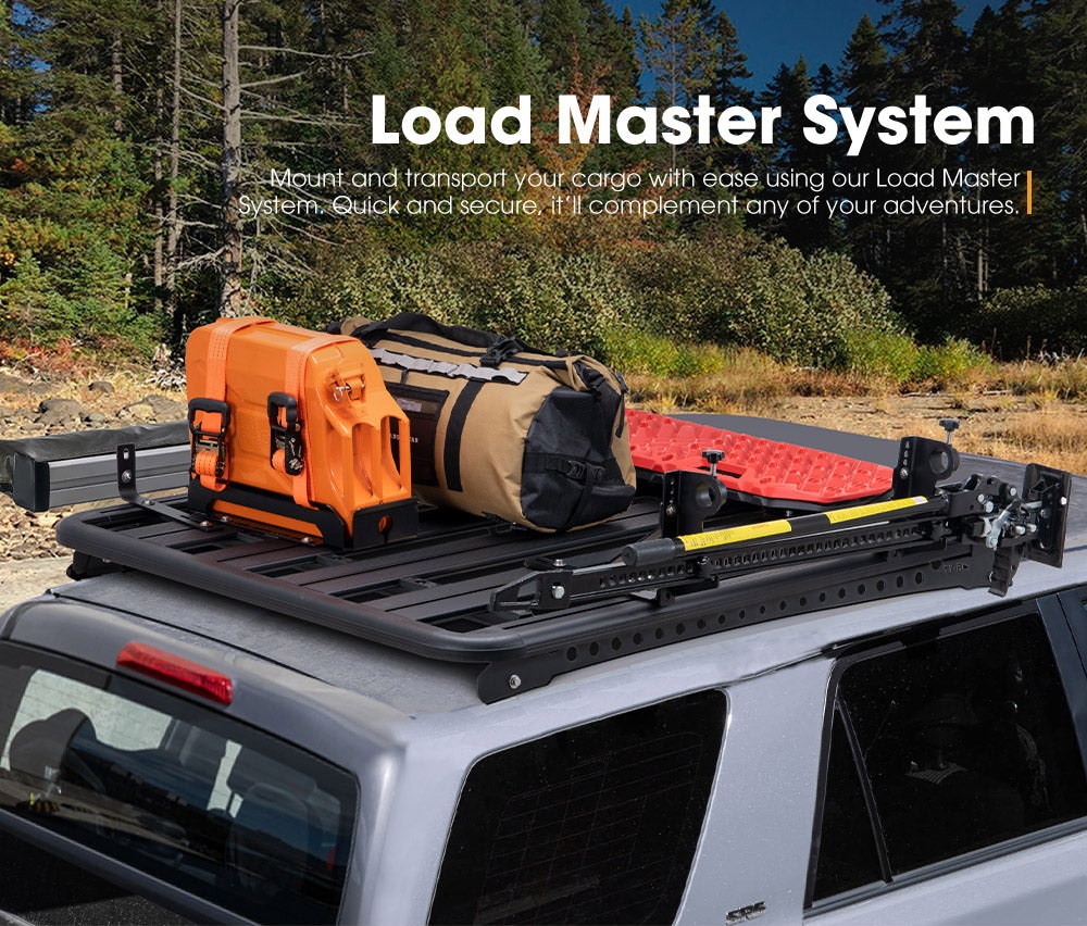 The San Hima roof rack platform is the ultimate load carrying solution for your Mazda BT-50 (2010+). It's strong, customizable, and includes a Load Master System for secure cargo attachment and modular set up abilities. Whether for adventurous pursuits or everyday use, it is the platform rack that makes the difference. Our platform rack is made of anodized 6061 aircraft grade aluminum alloy, reinforced with ABS+Nylon corners, ensuring a lightweight (only 19.4kg) yet tough build while maximizing BT-50's roof space. It comes assembled and is equipped with BT-50-specific mounting brackets. It securely attaches loads and works with mounting accessories (sold separately) to hold Jerry can, farm jack, roller, awning, side rails and eyebolts and so on. With a static and dynamic loading capacity of 200kg and 80kg, you don’t have to choose what to leave behind. Plus, the built-in Lightfox Vega Series 28-inch LED light bar improves visibility for night driving.