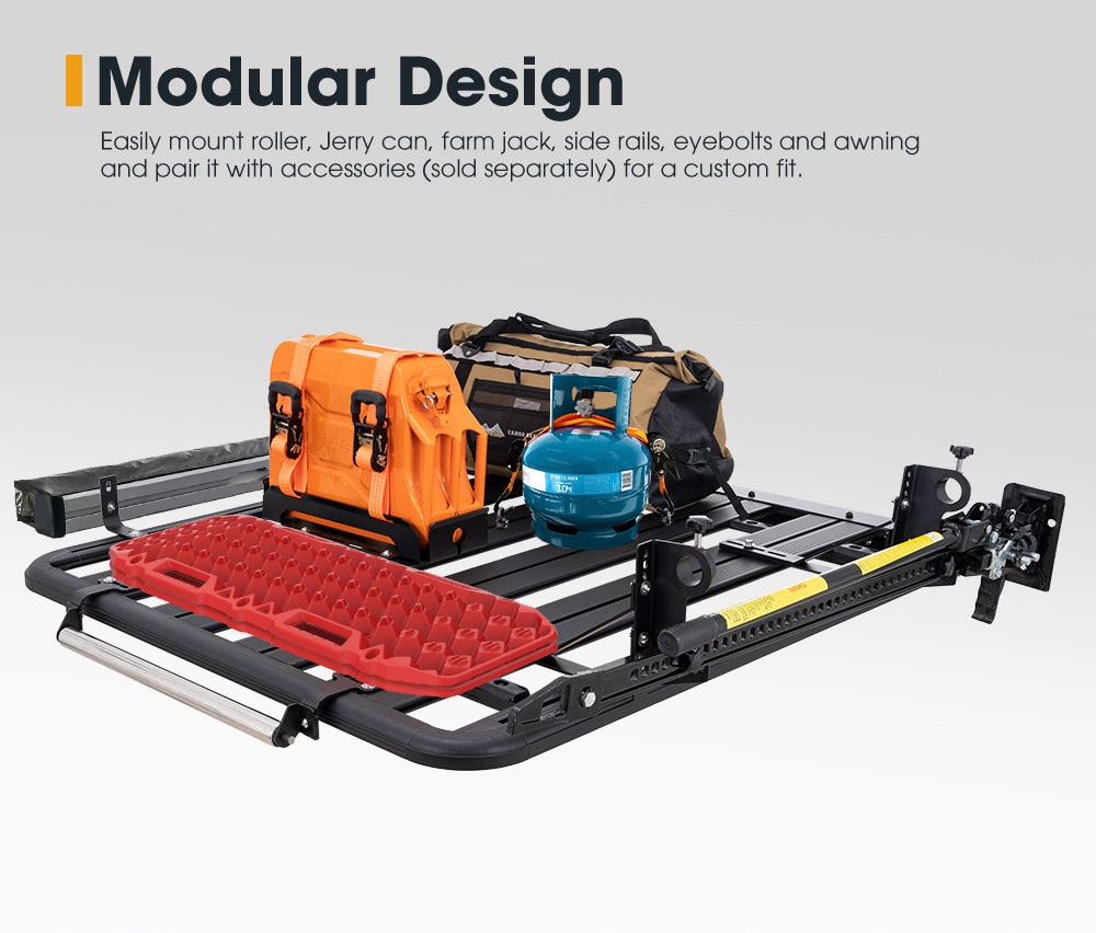 Modular Design: Easily mount roller, Jerry can, farm jack, side rails,
